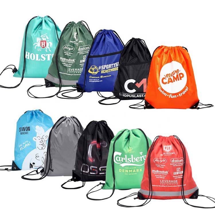 Promotional sports drawstring bag nylon gym waterproof polyester drawstring bag