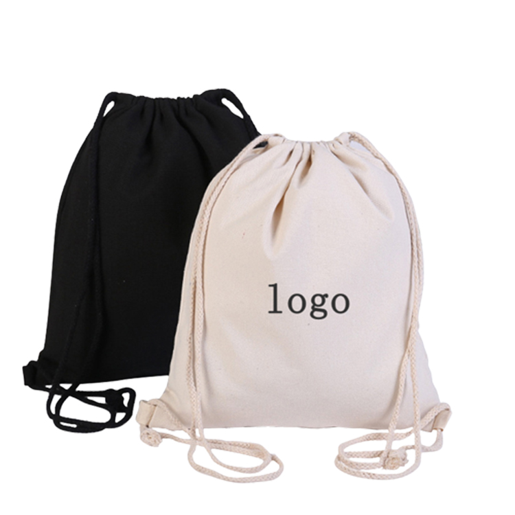 Wholesale white dust bags cotton canvas drawstring bag backpack with logo