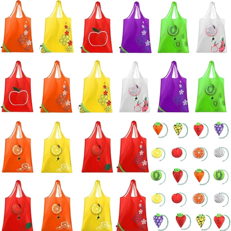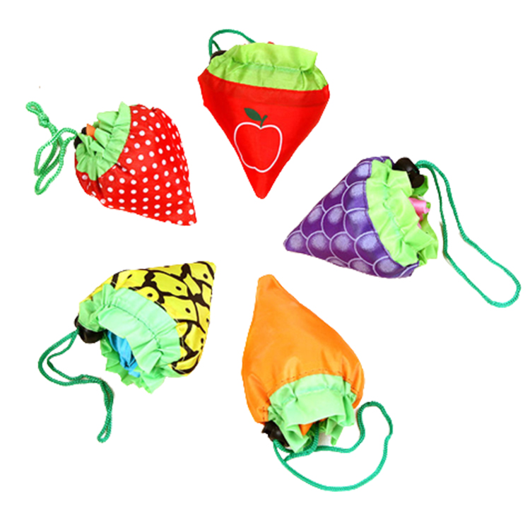 Customized eco reusable RPET black polyester foldable strawberry tote bag